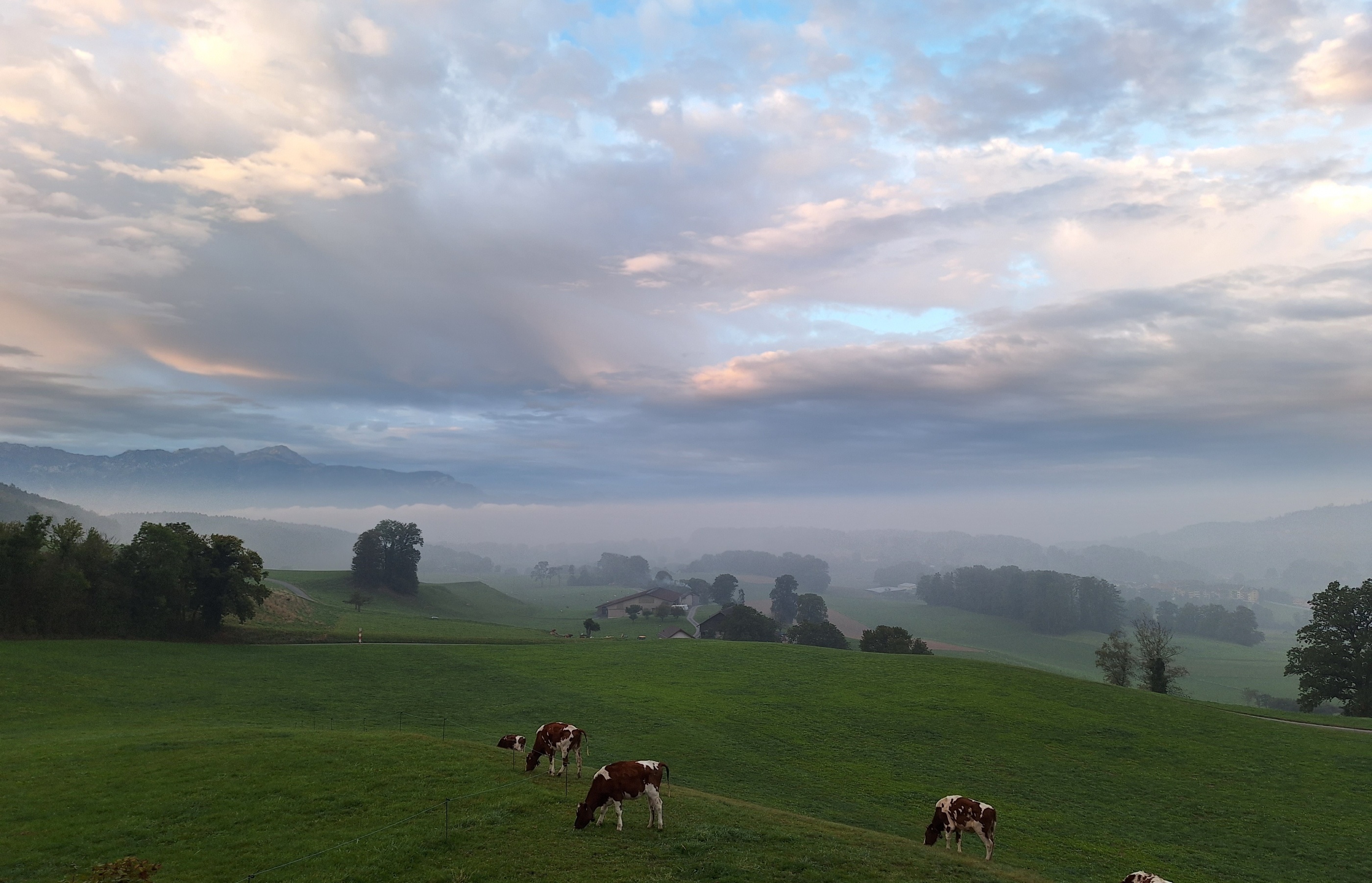 Wenige Tage zuvor noch zeigte sich der Spätsommer in aller Pracht. Man genoss die ergiebigen Sonnenstrahlen ebenso wie den erfrischenden Regen. Der Herbst zeigte sich aber alsbald von seiner abweisenden Seite. Nebelumhangen, träge und melancholisch begleitete er mich Richtung Brauerstrasse. Umso willkommener war das herzliche Zusammentreffen mit all den aufbruchsfreudigen Gesichtern, welche meine Kumpan*innen für die kommenden Ferientage im Waadtland sein sollten. An diesem ruhigen Dienstagmorgen machten wir uns auf gen Puidoux, einem Örtchen, von dem ich noch nie zuvor gehört hatte. Der Nebel begleitete uns und liess den Horizont verschwinden. Die Grenze zwischen Himmel und Boden war nur noch Imagination und liess Platz für Träume. Träume, die alsbald einer verspielten, hügeligen Landschaft wichen, welche wir durchfuhren.