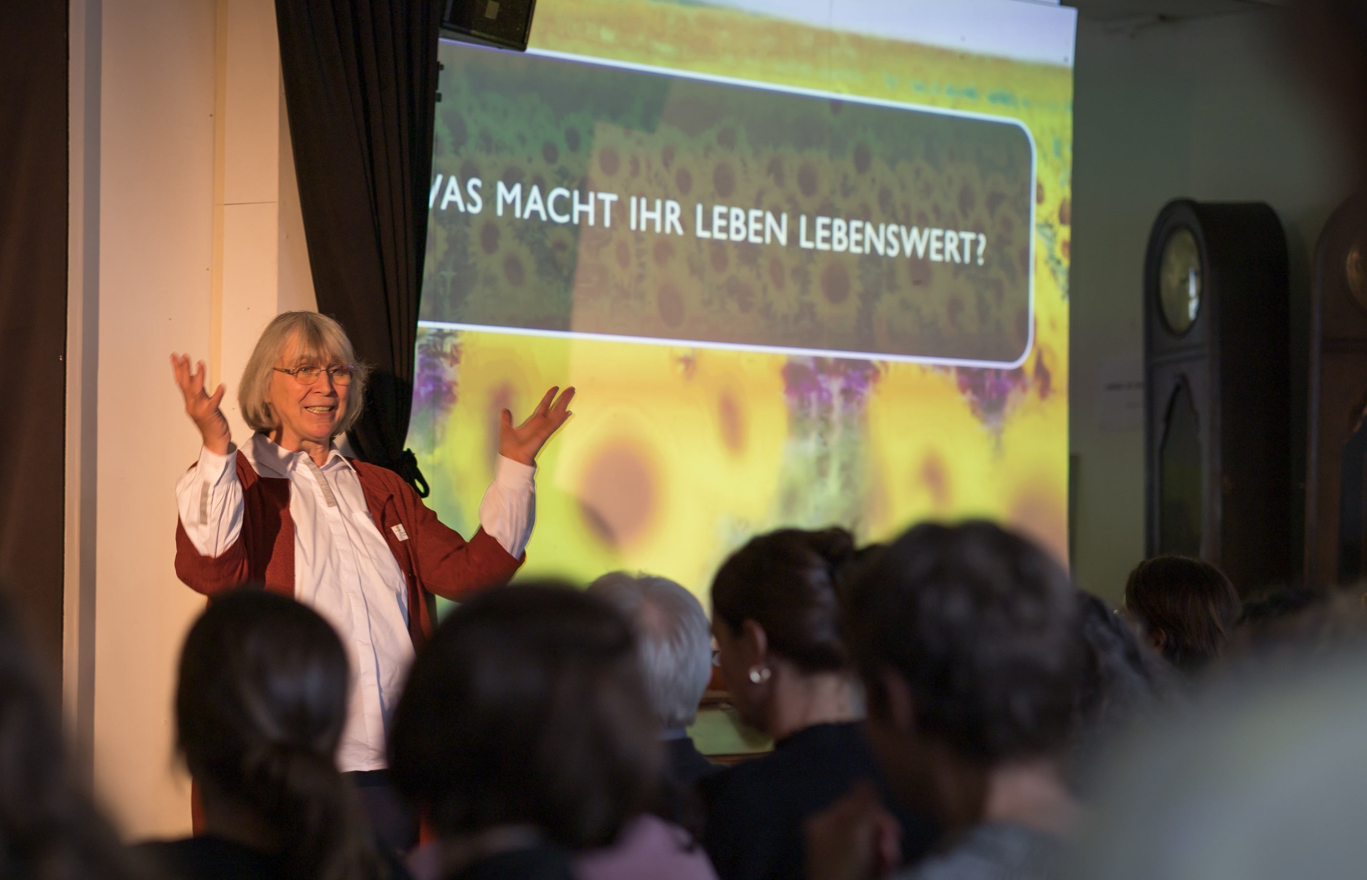 Am Donnerstag, 8. Mai 2025 durften wir die Philosophin und Autorin PD Prof. Barbara Schmitz am "Ethik-Funken" vom Förderraum begrüssen. In ihrem Vortrag zur Frage "Was ist ein lebenswertes Leben" gab sie spannende Einblicke in ihre Recherchen und in ihre eigenen, ganz persönlichen Erfahrungen. Alle Teilnehmer:innen hatten dazwischen immer wieder Gelegenheit, in kleinen Gruppen unterschiedliche Perspektiven und Überlegungen zu diskutieren.