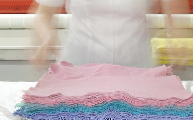 In unserer Wäscherei sorgt ein innovatives Dosier-System für saubere Wäsche bei minimalem Waschmitteleinsatz – gut für die Umwelt und die Kosten.