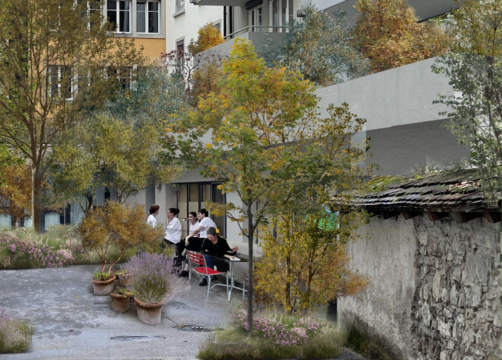 Hotel Dom begrünt Innenhof und leistet Beitrag zu Grünes Gallustal.