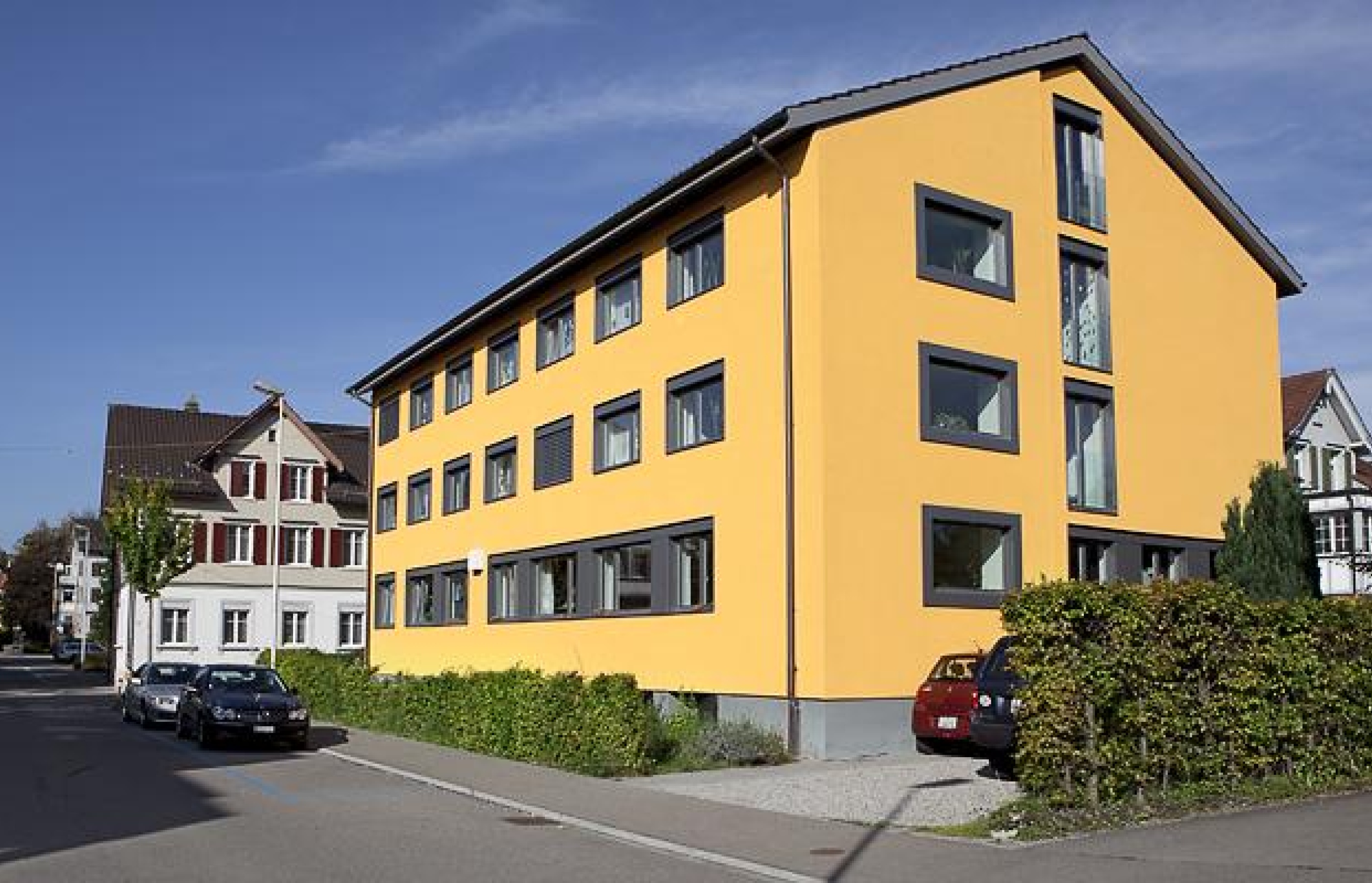 Die Wohngruppe Kirchstrasse in Gossau SG befindet sich in unmittelbarer Nähe zum Stadtzentrum, wo sich Schulen, Läden und Restaurants befinden, und bietet dennoch eine ruhige Lage. Sie bietet 16 Bewohnerinnen und Bewohnern Wohn- und Beschäftigungsmöglichkeiten. Bei Bedarf werden auch Personen in kleinen Wohneinheiten, die sich in der Nähe des Bahnhofs Gossau befinden, begleitet, entweder alleine oder zu zweit. Den Bewohnerinnen und Bewohnern stehen jeweils ein eigenes Zimmer, verschiedene Wohnzimmer, ein Snoezelraum, ein Bällebad und ein grosszügiger Garten mit Feuerstelle, Schaukel, Hochbeet und Lounge zur Verfügung, um die Freizeit gemeinsam zu gestalten. Die Bäder und WCs werden gemeinschaftlich genutzt.